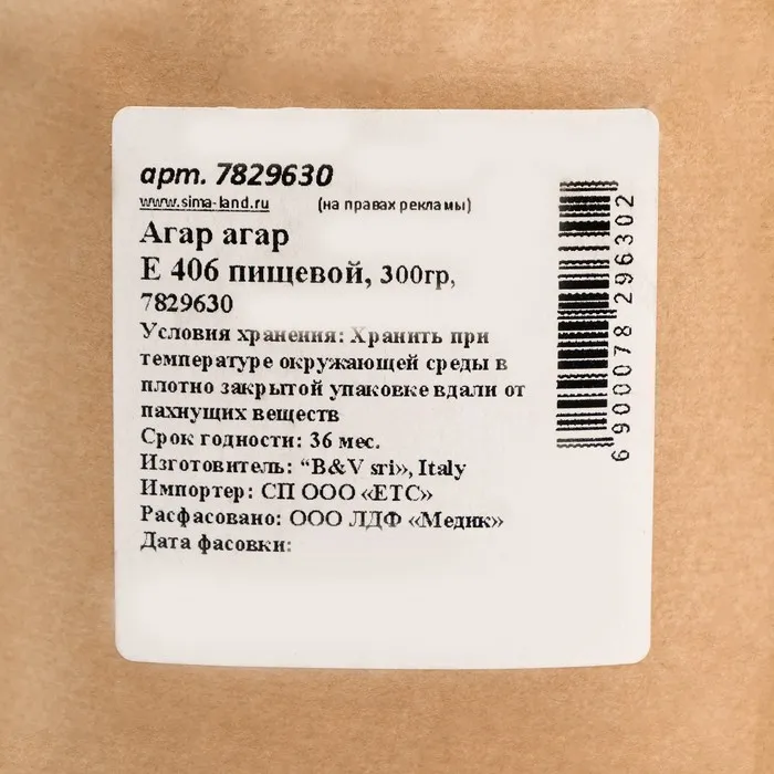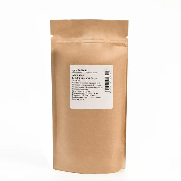 Натуральная альтернатива желатину для идеальной текстуры! Агар-агар премиум-класса (300 г) — растительный желирующий агент из красных водорослей. Создает плотные, стабильные структуры в десертах без вкуса и запаха.