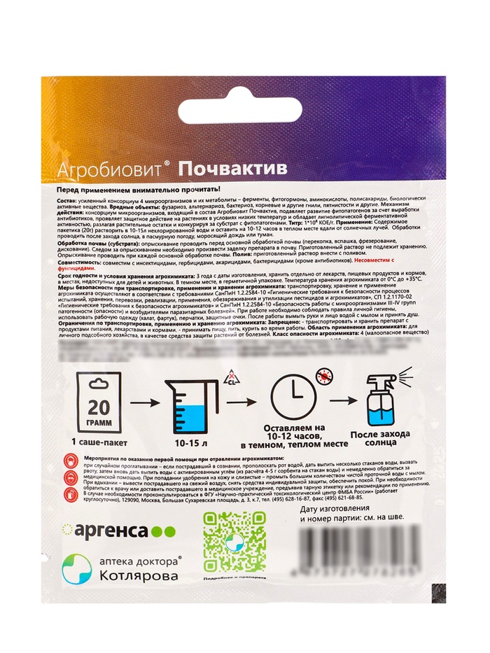 ДЕЙСТВУЮЩИЕ ВЕЩЕСТВА: усиленный консорциум 4 микроорганизмов и их метаболиты - ферменты, фитогормоны, аминокислоты, полисахариды, биологически активные вещества
