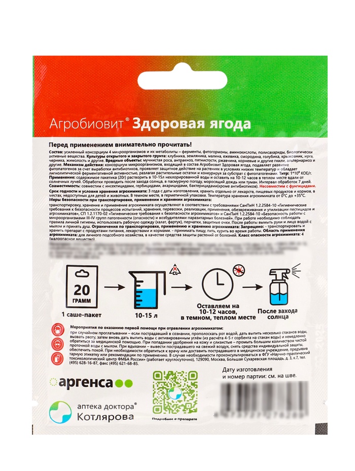 Агробиовит «Здоровая ягода», 20 г, средство для биозащиты от болезней, саше-пакет — Характеристики