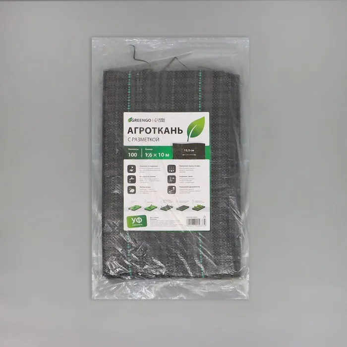 Агроткань застилочная, с разметкой, 10×1.6 м, плотность 100 г/м², полипропилен, Greengo, Эконом 50% — Характеристики
