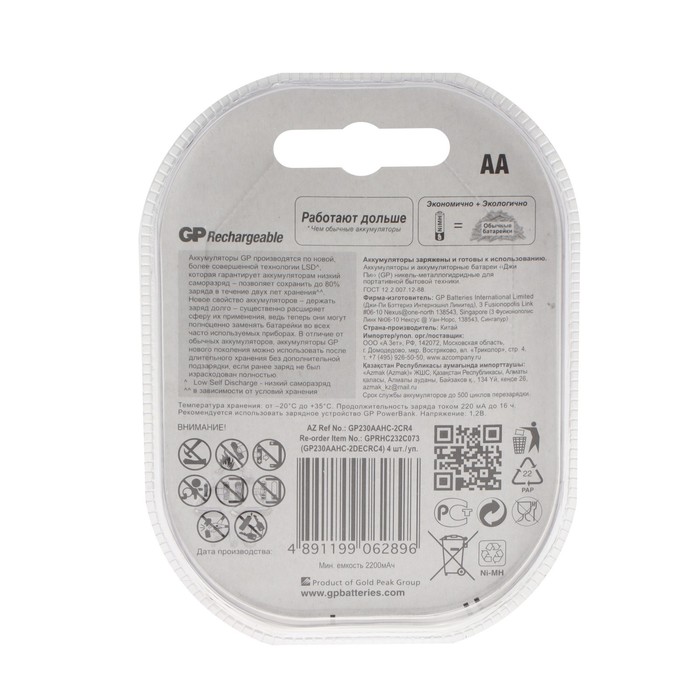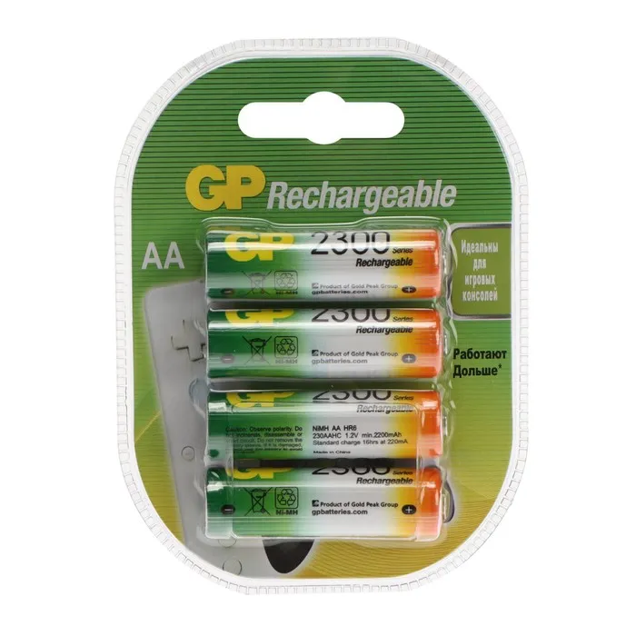 Аккумулятор GP, Ni-Mh, AA, HR6-4BL, 1.2В, 2300 мАч, блистер, 4 шт. — Характеристики