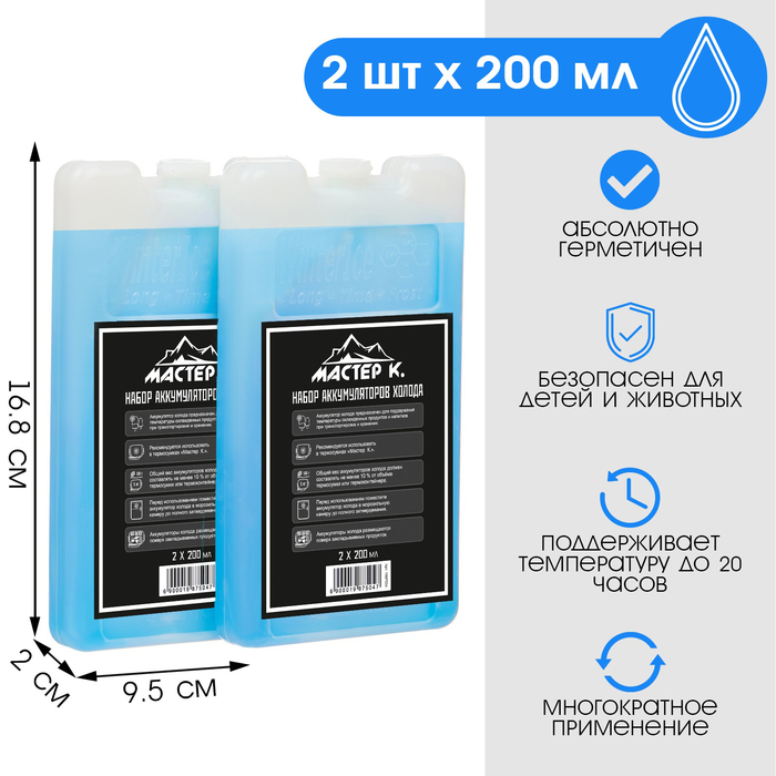 Аккумулятор тепла/холода, он же хладоэлемент и холодоаккумулятор, предназначен для поддержания высокой или низкой температуры в контейнерах из вспененных материалов, сумках-холодильниках и термопакетах. Он равномерно распределяет холод или тепло внутри термосумки, не протекает, обеспечивает долговременное охлаждение продуктов.