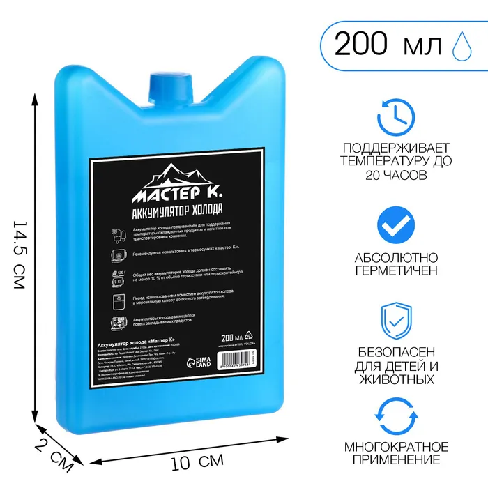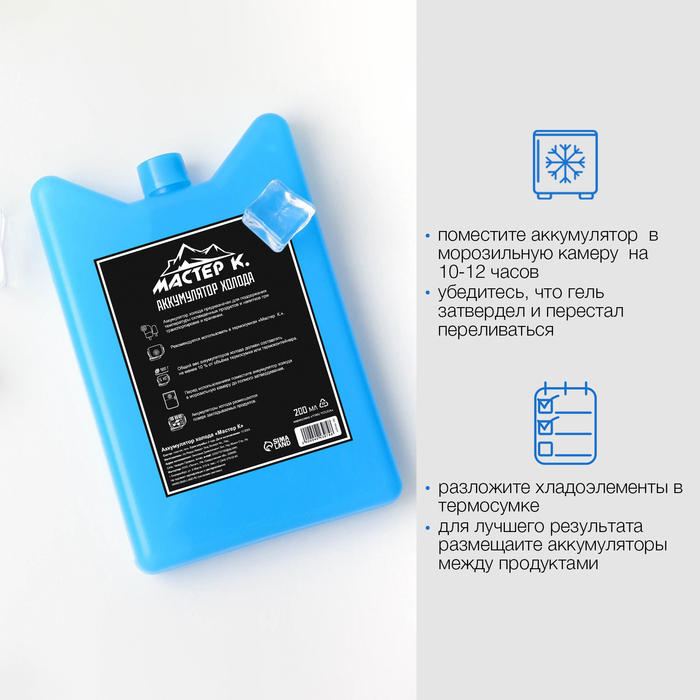 Аккумулятор холода гелевый «Мастер К», 200 мл, хладоэлемент для термосумок, 14.5×10×2 см — Характеристики