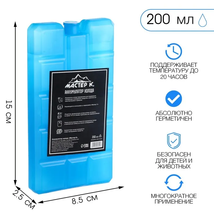 Аккумулятор холода гелевый «Мастер К», 200 мл, хладоэлемент для термосумок, 15×8.5×2.5 см — Характеристики