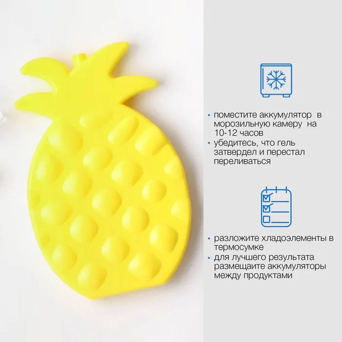 Маленький охладитель прост в использовании: достаточно поместить его в холодильник или морозилку на 8-12 часов. После этого терморегулятор разместить в термосумке, контейнере, сумке-холодильнике, термопакете или аптечке. Количество элементов, необходимых для охлаждения, зависит от объемов аксессуара. На каждые 10 литров необходимо использовать 300-500 мл охладителя.