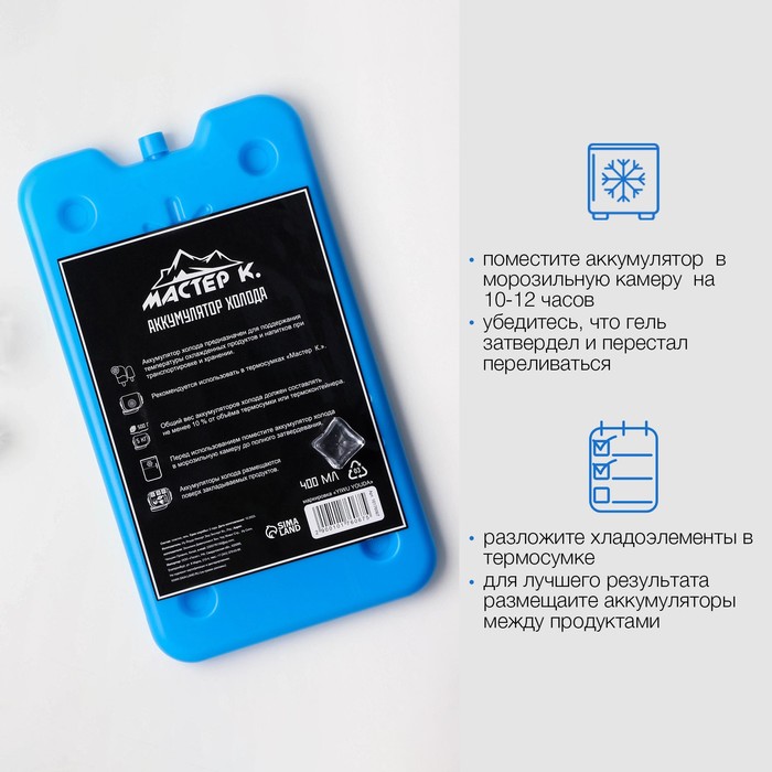 Аккумулятор холода гелевый «Мастер К», 400 мл, 25×14×1.5 см — Характеристики