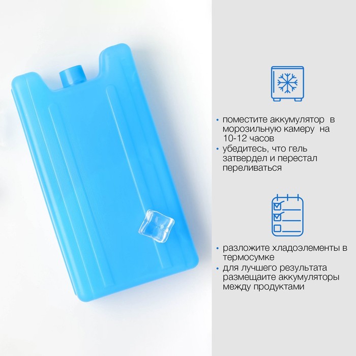 Аккумулятор холода — это герметичный контейнер с теплоёмким гелевым раствором. Компактное изделие удобно использовать в изотермических контейнерах и сумках.