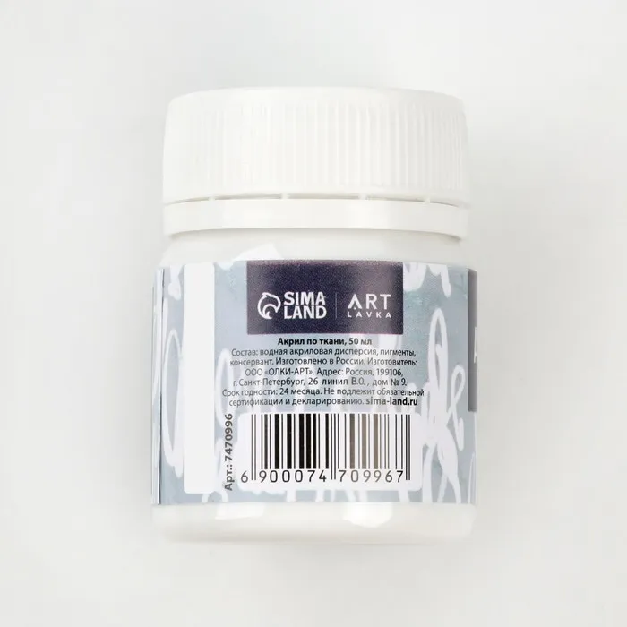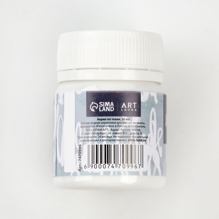 Акриловая краска по ткани ARTLAVKA, белая 50 мл — Характеристики