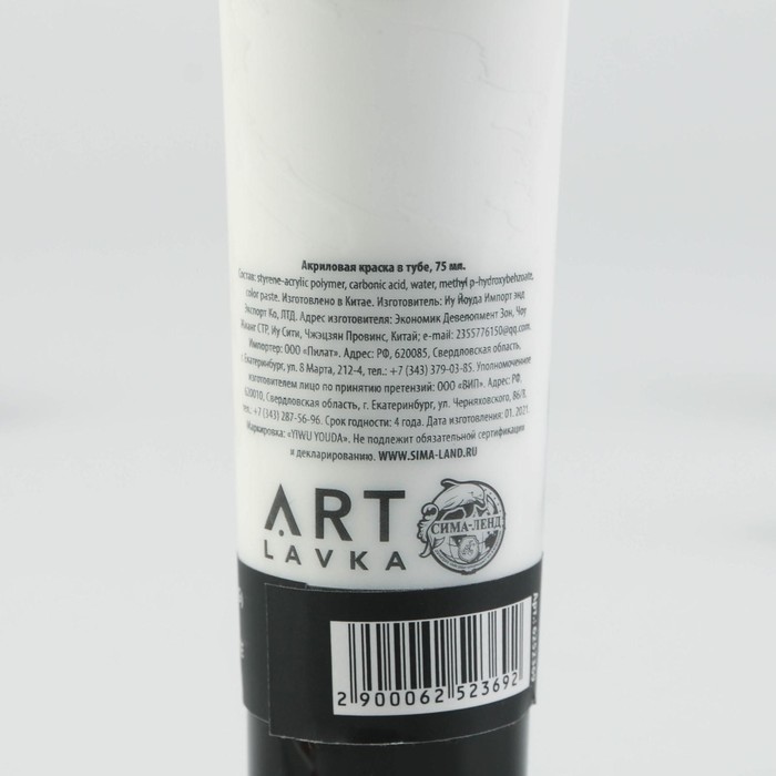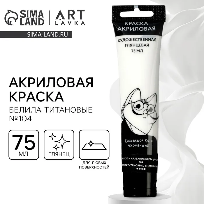 Акриловая краска, цвет белила титановые, №104, в тубе 75 мл, ARTLAVKA — Характеристики