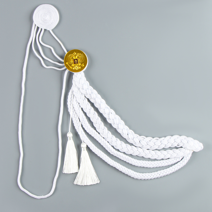 - Аксельбант легко фиксируется на форме с помощью крепления под погоном и пуговицей, обеспечивая надёжную фиксацию.