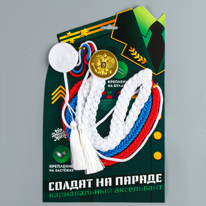 Яркий и стильный аксельбант — незаменимый аксессуар для создания образа солдата на параде. Этот элемент костюма поможет вам погрузиться в атмосферу праздника и почувствовать себя настоящим защитником Родины.