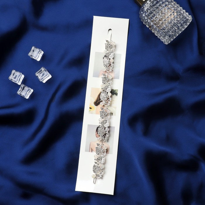 Аксессуар для волос «Берта», с невидимками, крупные листочки, 23.5 см, серебристо-белый