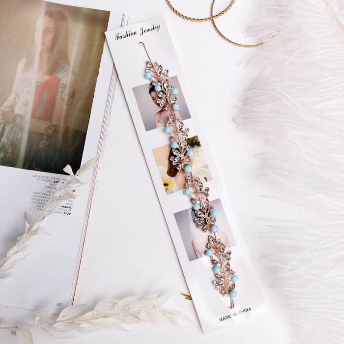 Аксессуар для волос «Моника», на невидимках, цветы с голубыми бусинами, 23 см — Характеристики