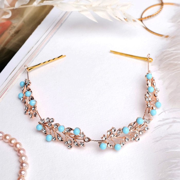 Аксессуар для волос «Моника», на невидимках, цветы с голубыми бусинами, 23 см