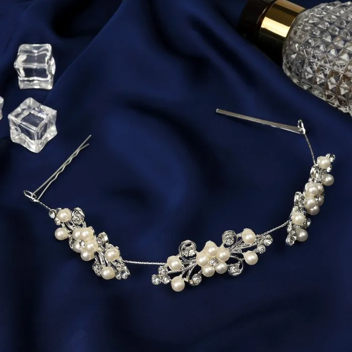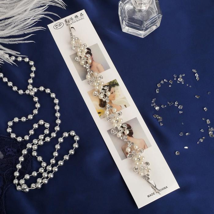 Аксессуар для волос «Никки», цветочки на веточках, 21 см, серебро