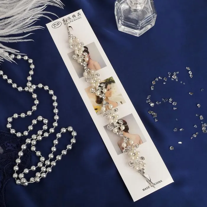 Аксессуар для волос «Никки», цветочки на веточках, 21 см, серебро — Характеристики