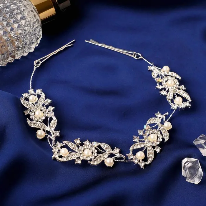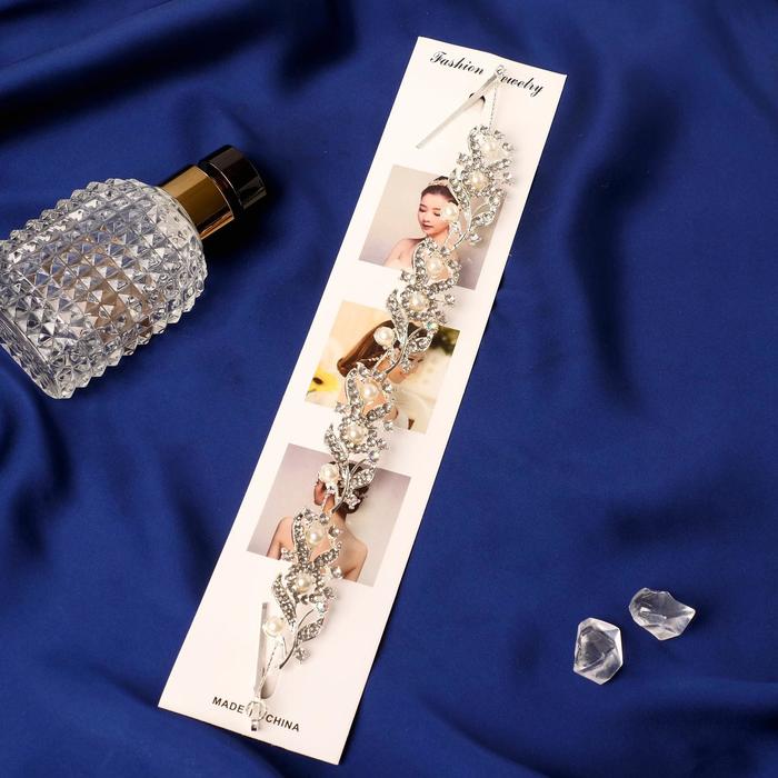 Аксессуар для волос «Жемчужное чудо», цветочки, 21 см, серебро — Характеристики