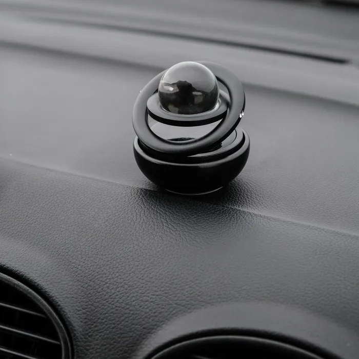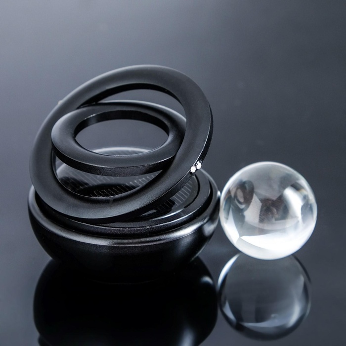 Стильный аксессуар работает от прямых солнечных лучей. Такой ароматизатор не оставит никого равнодушным. Внутрь вставляется шайба-ароматизатор. Можно вырезать самостоятельно из фетра или любого другого впитывающего материала. Скорость вращения зависит от интенсивности солнечных лучей. Интенсивность аромата зависит от скорости вращения. Изготовлен освежитель из прочного металла. Крепится на панель или любое другое место в салоне на двухсторонний скотч.