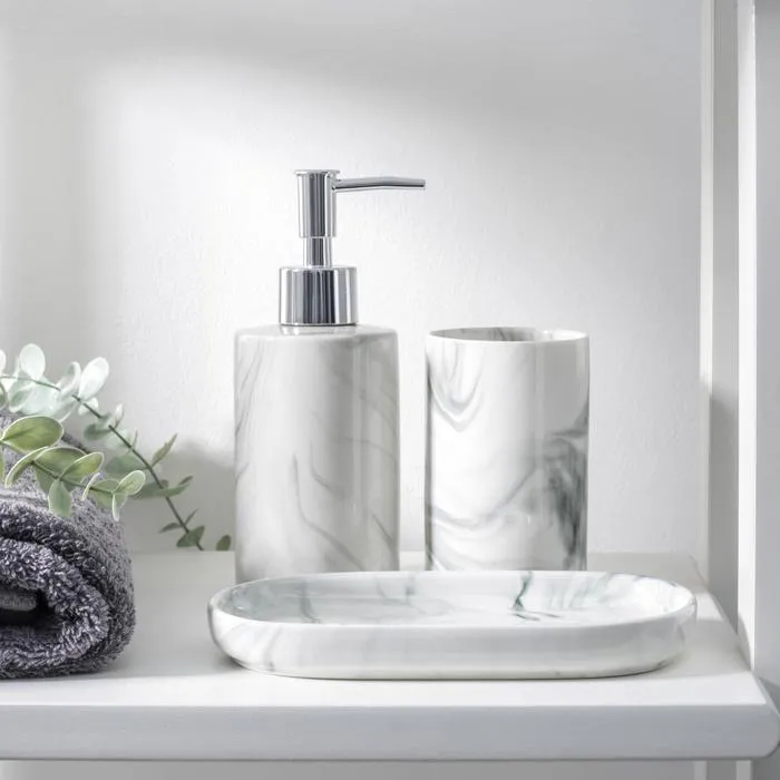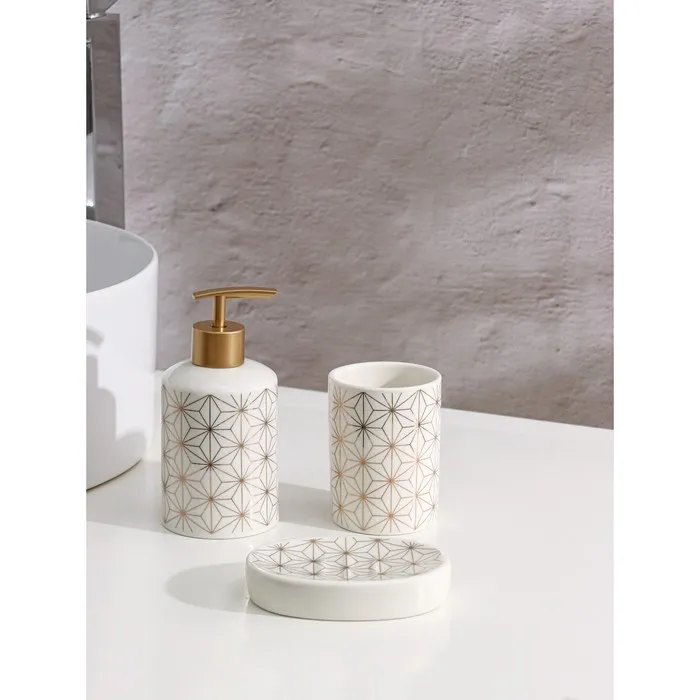 - Набор аксессуаров значительно облегчит хранение ванных принадлежностей.