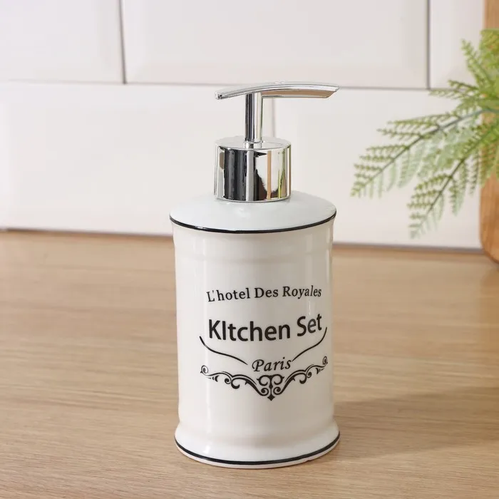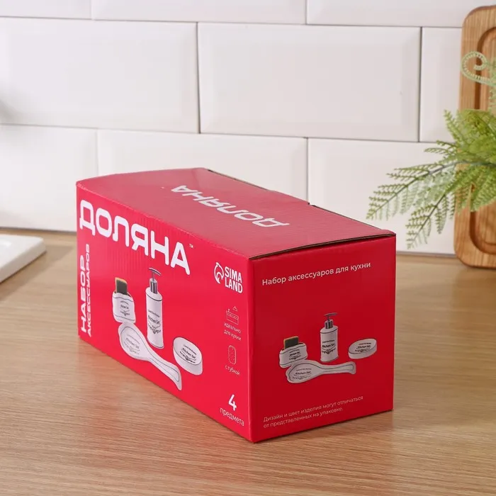 Аксессуары для кухни Доляна «Уют», 4 предмета, дозатор 300 мл, мыльница, подставка для губки, подставка для ложки, белые — Характеристики