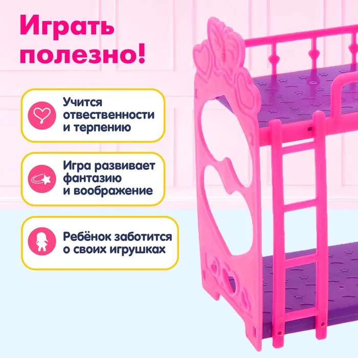 Аксессуары для кукол: кроватка двухъярусная «Малышка» — Характеристики