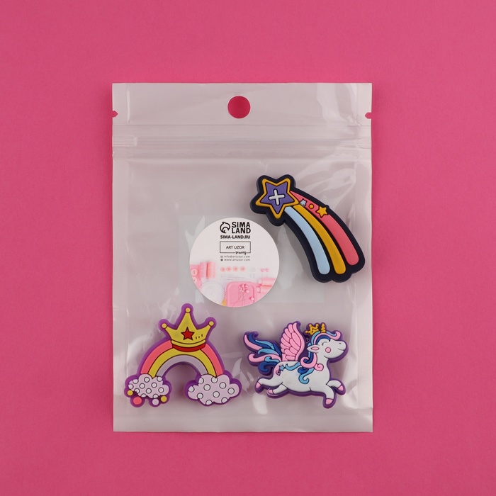 Добавьте нотку волшебства в свой образ с этим ярким набором аксессуаров. Три оригинальных декоративных элемента в сказочной тематике превратят даже самую обычную обувь в маленький шедевр. Каждый аксессуар выполнен с вниманием к деталям, а прочное крепление гарантирует, что они останутся на месте в течение всего дня.