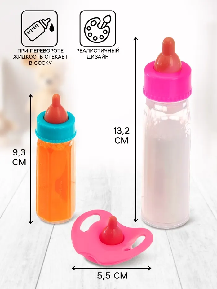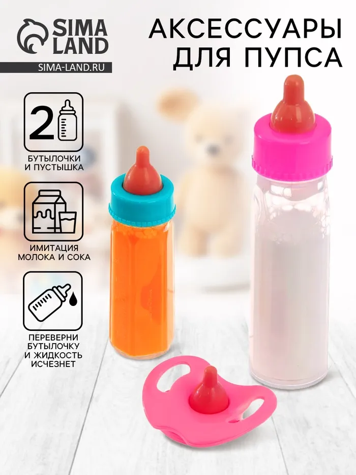 Аксессуары для пупса «Волшебная бутылочка», набор 2 бутылочки и пустышка, МИКС — Характеристики