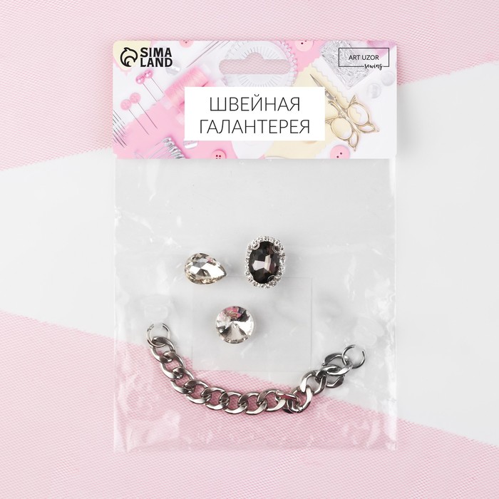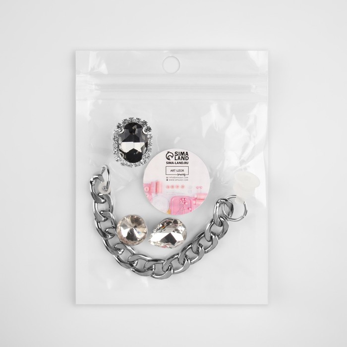 В комплект входят цепочка и стразы, которые гармонично сочетаются между собой, создавая эффект драгоценного украшения для сандалий или сабо