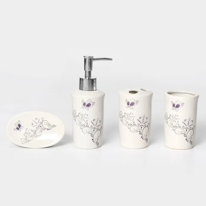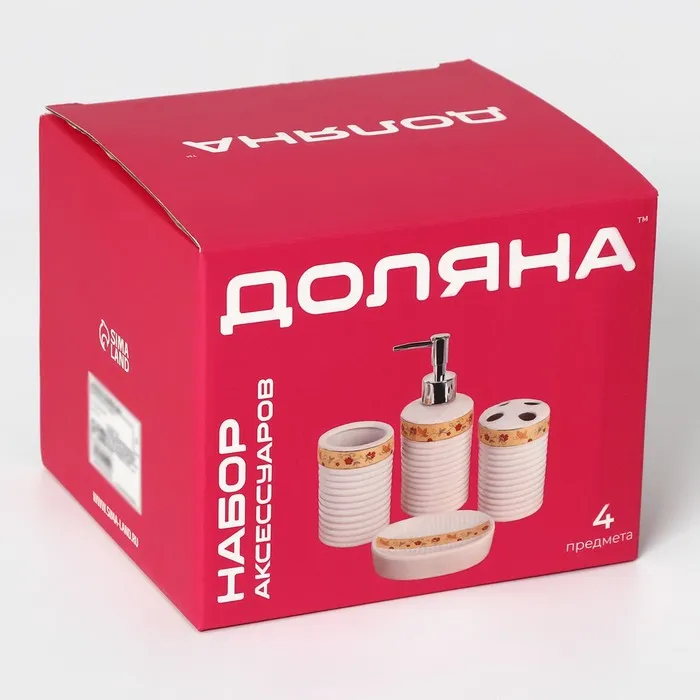 Аксессуары для ванной Доляна «Изящество», 4 предмета, дозатор 250 мл, мыльница, 2 стакана, белые — Характеристики