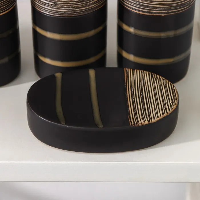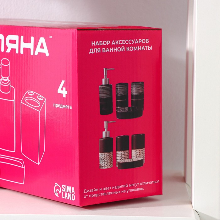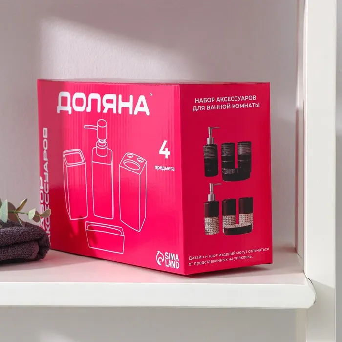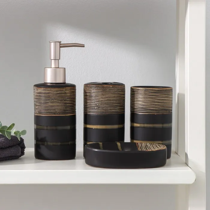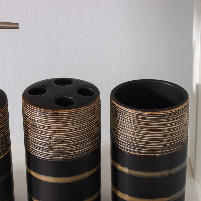 Аксессуары для ванной Доляна «Классика», 4 предмета: дозатор 300 мл, мыльница, 2 стакана, чёрные — Характеристики
