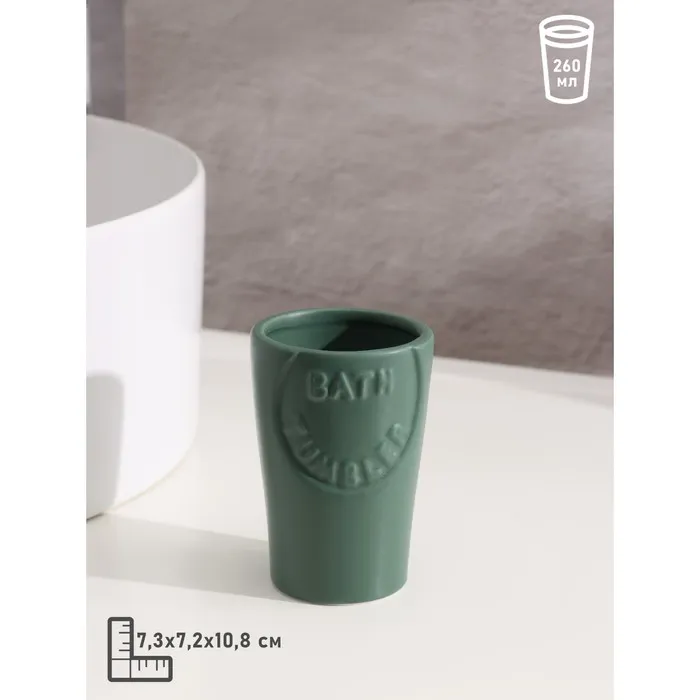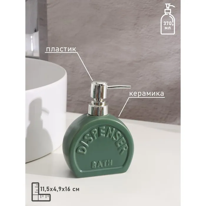 Аксессуары для ванной Доляна «Легенда», 3 предмета, дозатор 370 мл, мыльница, стакан, зелёные — Характеристики