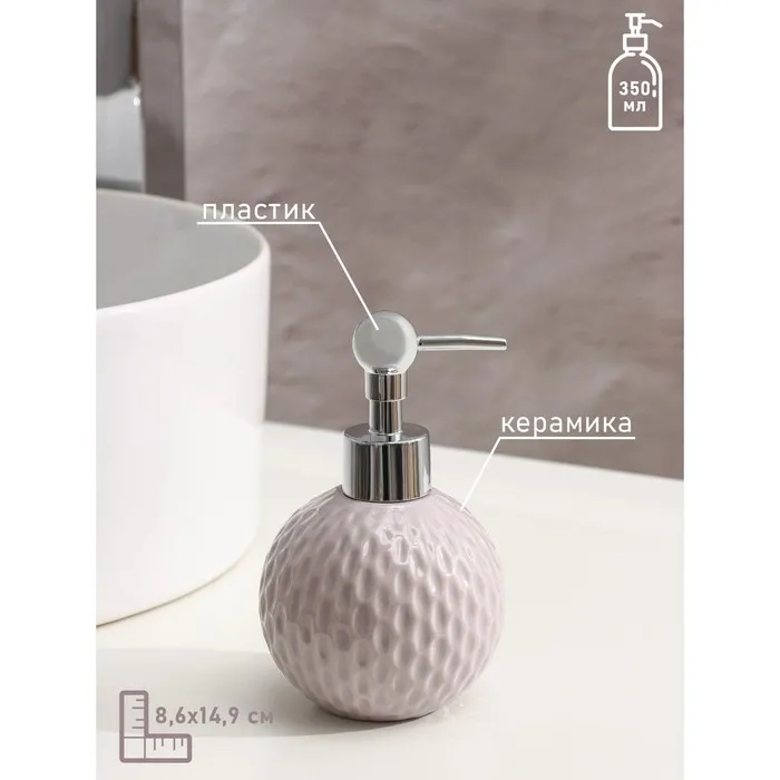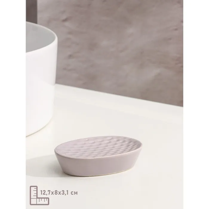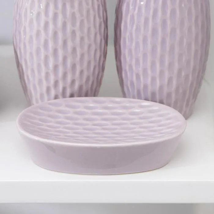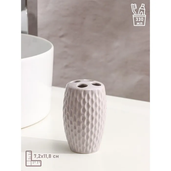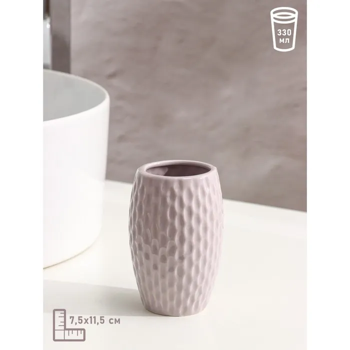 Аксессуары для ванной Доляна «Рельеф», 4 предмета, дозатор 300 мл, мыльница, 2 стакана, сиреневые — Характеристики