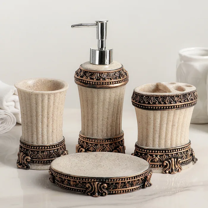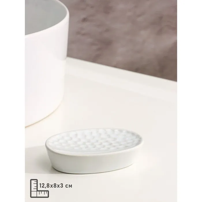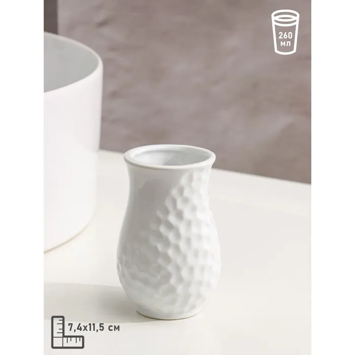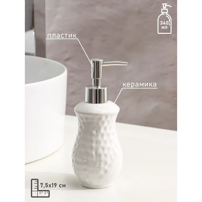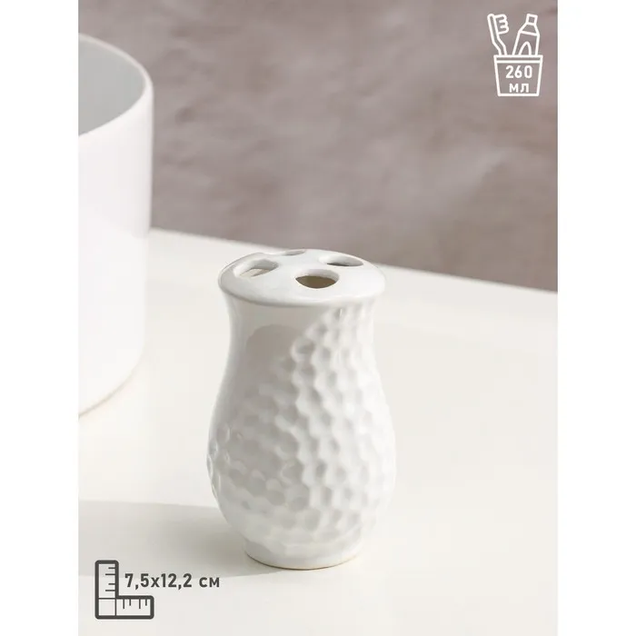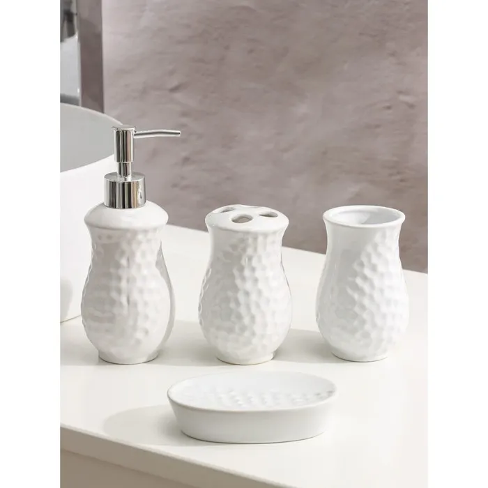 Аксессуары для ванной Доляна «Рельеф», 4 предмета, дозатор 340 мл, мыльница, 2 стакана 300 мл, белые — Характеристики