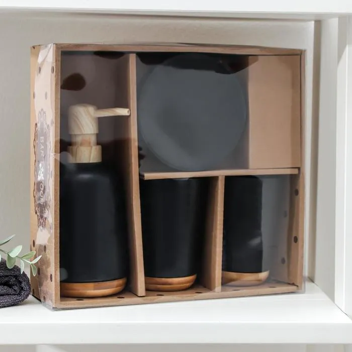 Аксессуары для ванной «Эко», 4 предмета, мыльница, дозатор для мыла, 2 стакана, чёрные — Характеристики
