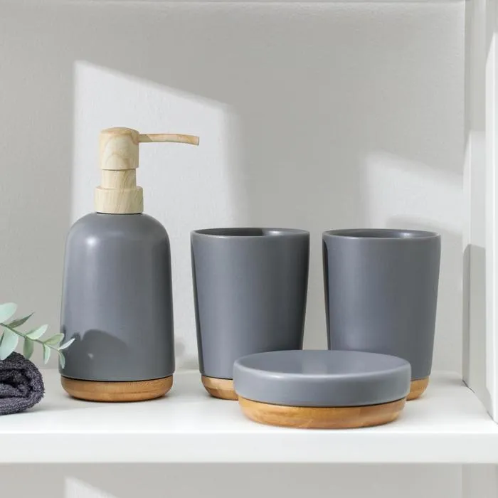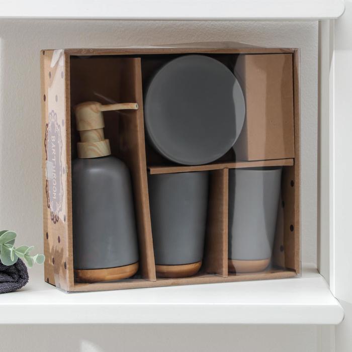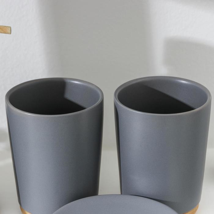 Аксессуары для ванной «Эко», 4 предмета, мыльница, дозатор для мыла, 2 стакана, серые — Характеристики