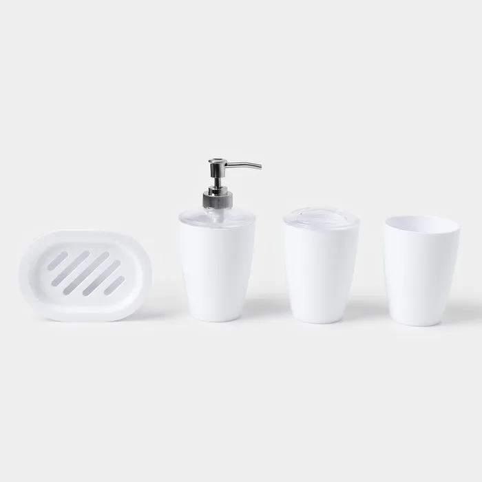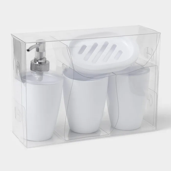 Невероятный набор аксессуаров для ванной комнаты из 4 предметов, который станет незаменимым помощником в создании уюта и порядка. Этот элегантный набор аксессуаров для ванной комнаты включает в себя диспенсер для мыла, который позволит вам легко и экономично использовать жидкие мыла и держать их всегда под рукой. Также в комплект входит удобный держатель для зубных щеток, который обеспечит идеальную гигиену и организованность для всей семьи.