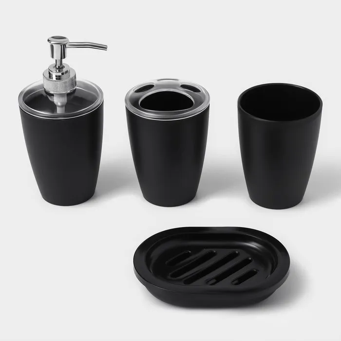 Также в наборе вы найдете стильный и практичный стакан, который может служить как подставкой для зубных щеток, так и для других мелочей, таких как зубная паста или бритвы. Для тех, кто предпочитает твердое мыло, в комплекте имеется элегантная мыльница, которая не только сохранит ваше мыло сухим и чистым, но и станет стильным акцентом в вашей ванной комнате.