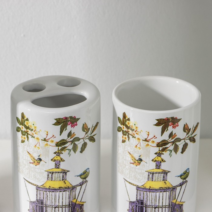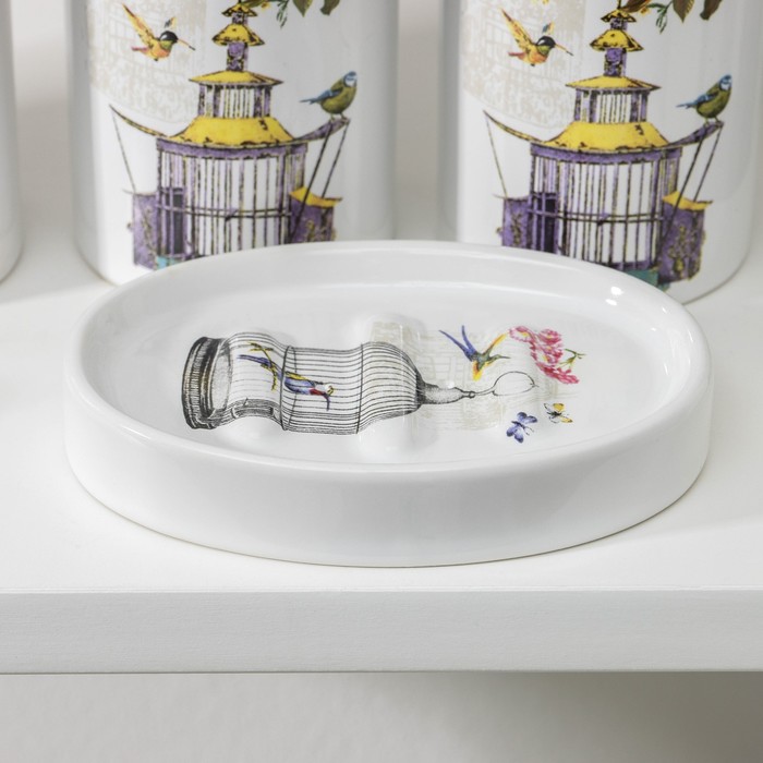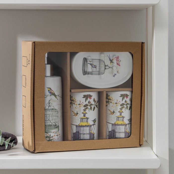 Аксессуары для ванной «Клетка», 4 предмета, дозатор 300 мл, мыльница, 2 стакана, белые — Характеристики