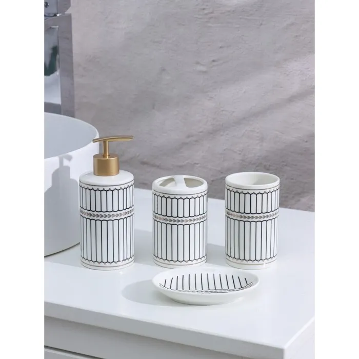 Аксессуары для ванной «Лайн», 4 предмета: дозатор 400 мл, мыльница, 2 стакана, белые — Характеристики