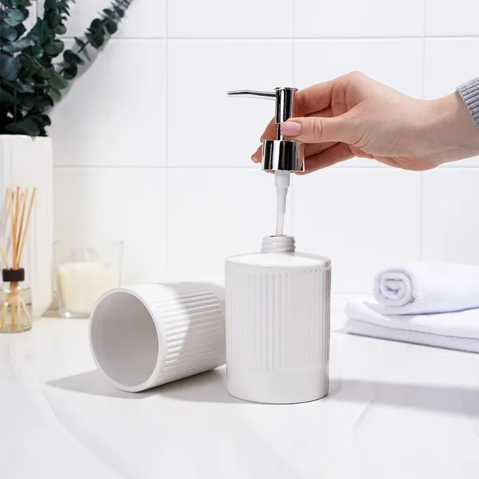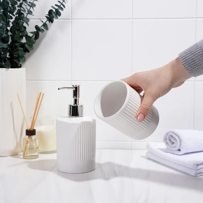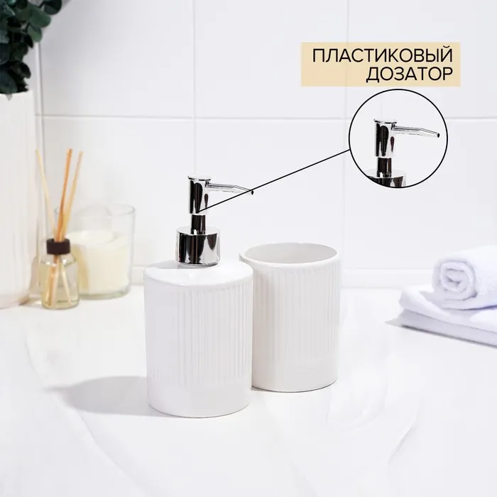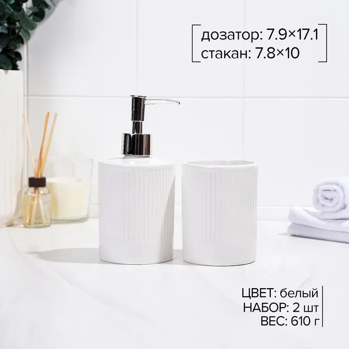 Аксессуары для ванной «Лина», 2 предмета: дозатор для мыла, стакан, белые — Характеристики