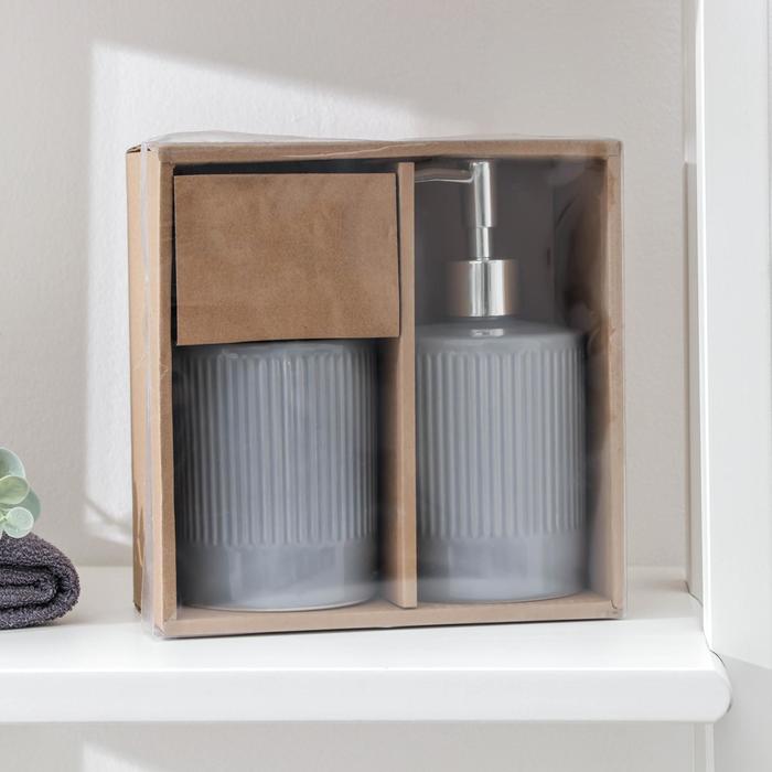 Аксессуары для ванной «Лина», 2 предмета, дозатор для мыла, стакан, серые — Характеристики