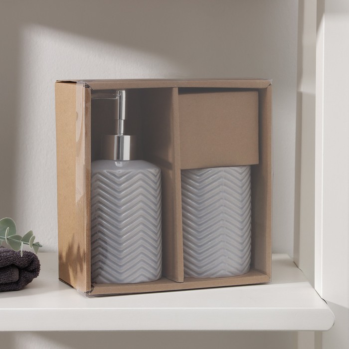 Аксессуары для ванной «Минимал», 2 предмета, дозатор для мыла 350 мл, стакан 350 мл, серые — Характеристики