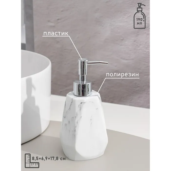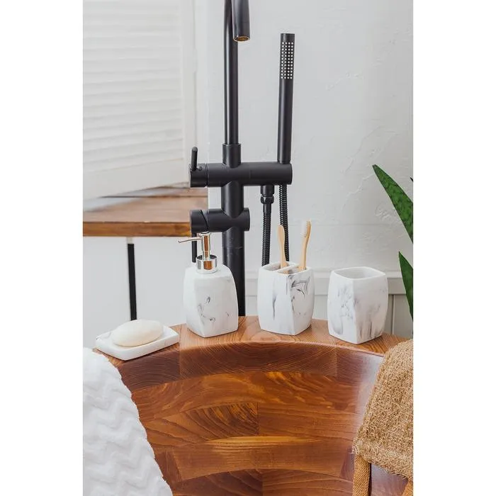 Набор аксессуаров «Мрамор» организует пространство и станет стильным украшением Вашей ванной комнаты. За счет сдержанного дизайна данный набор в ванную подойдет к любому дизайну ванной комнаты. Набор состоит из 4 предметов.