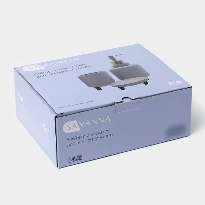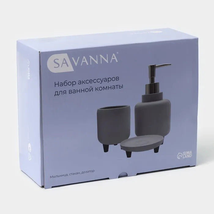 Аксессуары для ванной SAVANNA, 3 предмета, дозатор для мыла 390 мл, стакан 300 мл, мыльница, серые — Характеристики