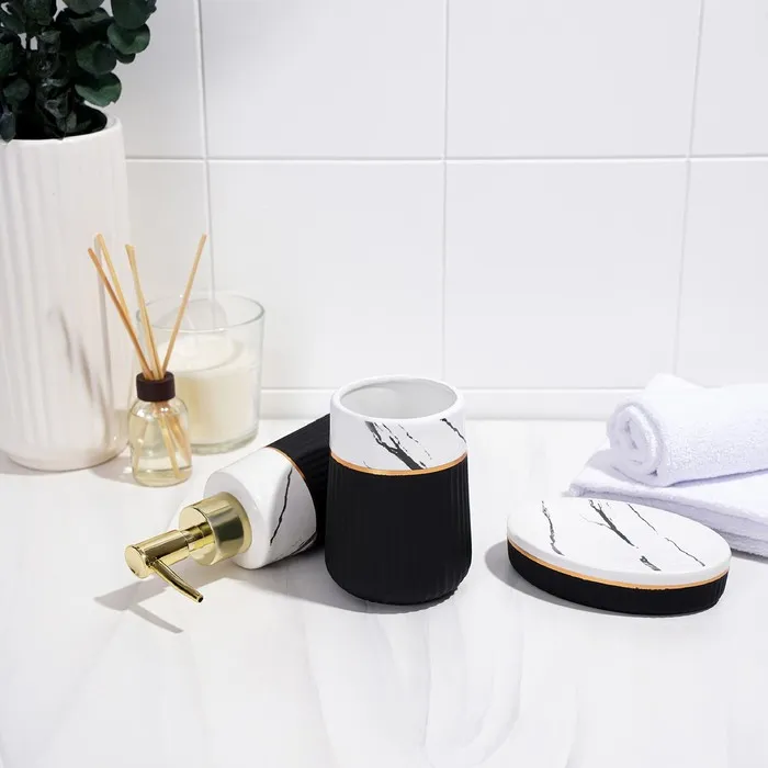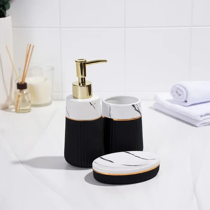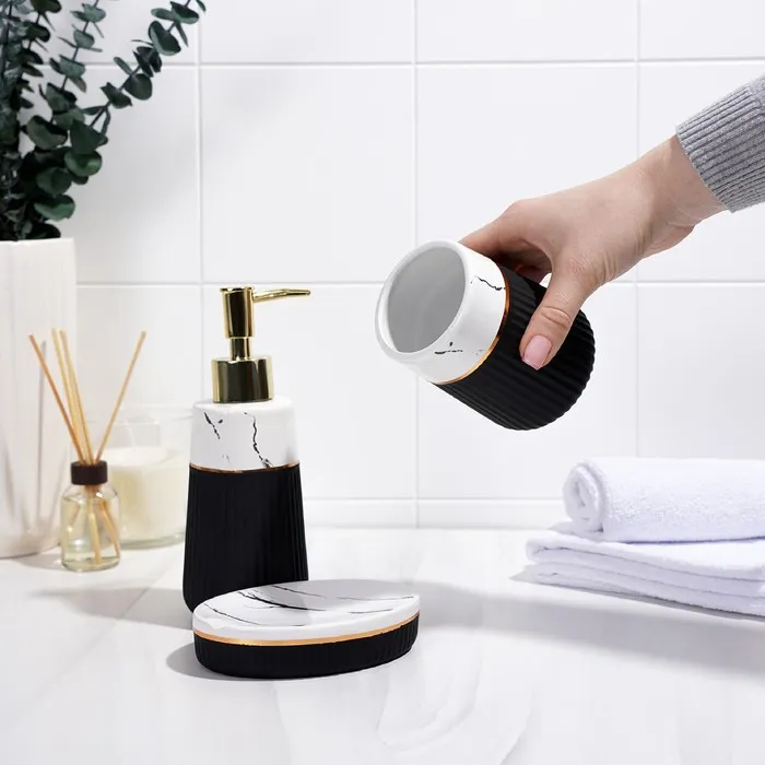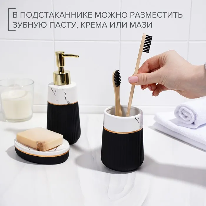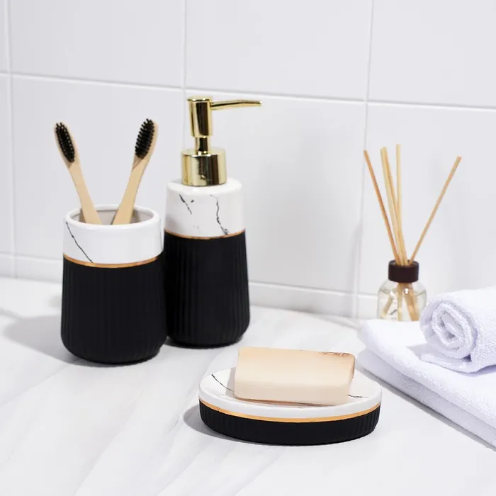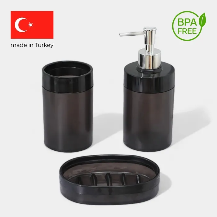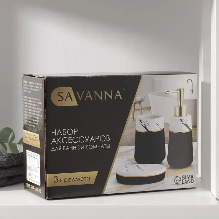 Аксессуары для ванной SAVANNA Grace, 3 предмета, дозатор для мыла 290 мл, стакан, мыльница, чёрные — Характеристики