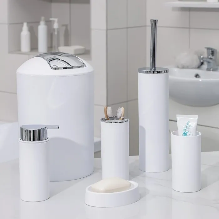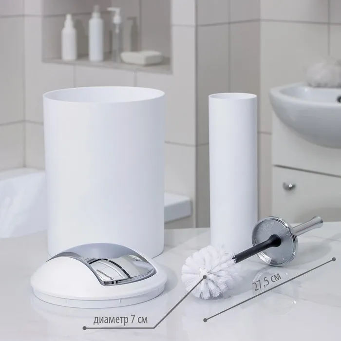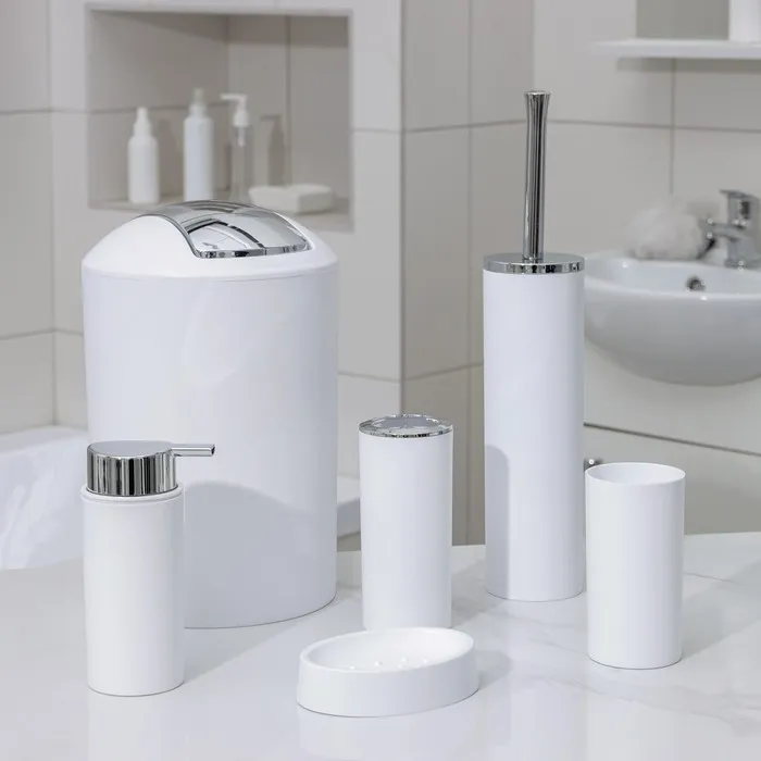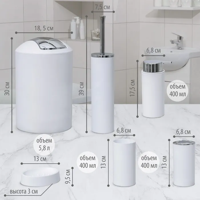 Аксессуары для ванной SAVANNA «Сильва», 6 предметов, дозатор, мыльница, 2 стакана, ёршик, ведро, белые — Характеристики