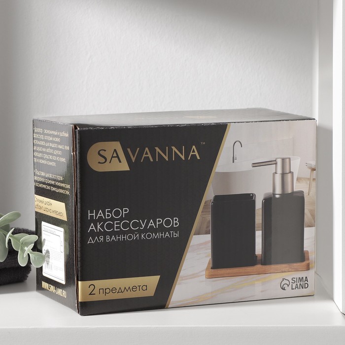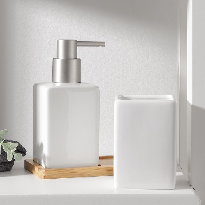 Аксессуары для ванной SAVANNA Square, 3 предмета: дозатор для мыла, стакан, подставка, белые — Характеристики