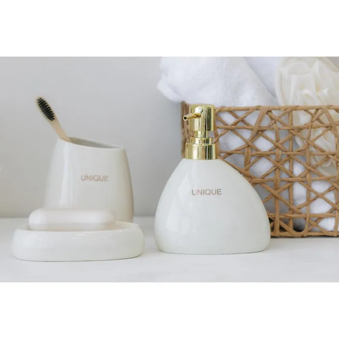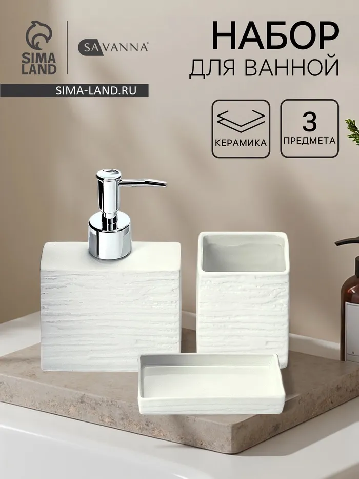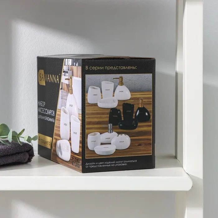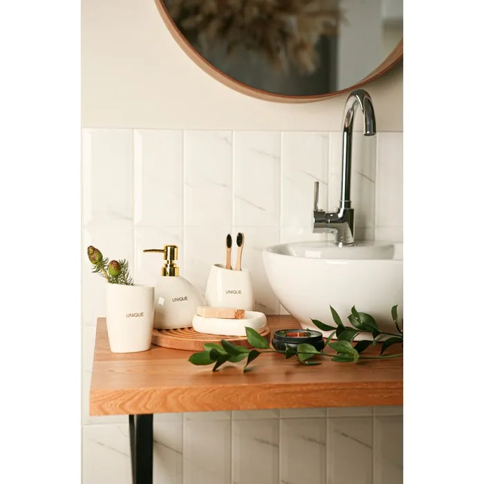 Погрузитесь в мир изысканного дизайна и функциональности с набором аксессуаров для ванной комнаты SAVANNA Stone. Этот набор, выполненный из высококачественной керамики, включает четыре предмета: мыльницу, дозатор для мыла и два стакана, идеально подходящих для хранения зубных щеток или других мелочей. Белый цвет и минималистичный стиль делают его идеальным дополнением для любой ванной комнаты, придавая ей современный и утонченный вид.