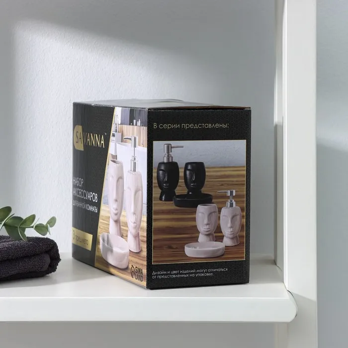 Добавьте этот изысканный набор в свою ванную комнату и наслаждайтесь не только его функциональностью, но и эстетическим удовольствием от его использования. Выбор аксессуаров «Вуду» от SAVANNA — это шаг к созданию комфортного и стильного пространства в вашем доме.