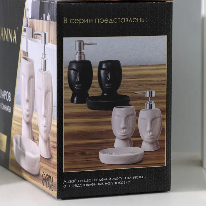 Аксессуары для ванной SAVANNA «Вуду», 3 предмета, мыльница, дозатор для мыла, стакан, чёрные — Характеристики